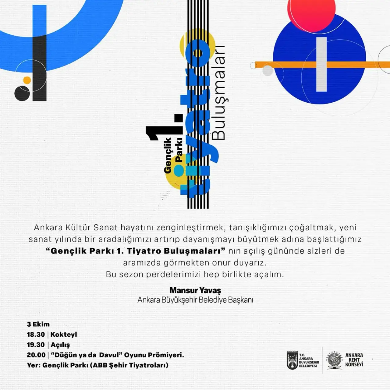 Ankara Büyükşehir Belediye Başkanı Mansur Yavaş’ın da davetiyle duyurulan etkinlikte “Bu sezon perdelerimizi hep birlikte açalım” mesajı öne çıkıyor. Tüm Ankaralılar açılış gününe ve prömiyere davetli.